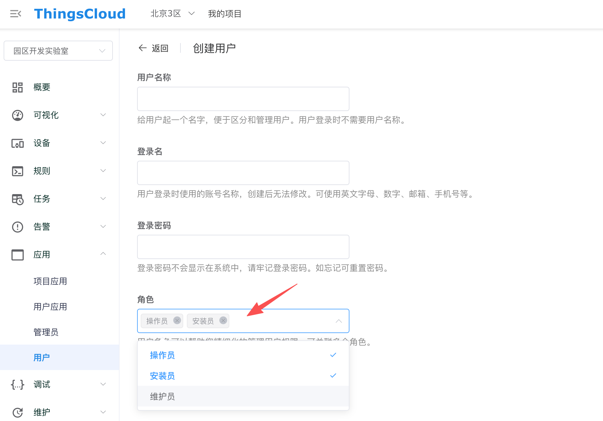 在 ThingsCloud 的项目中,支持多用户体系。